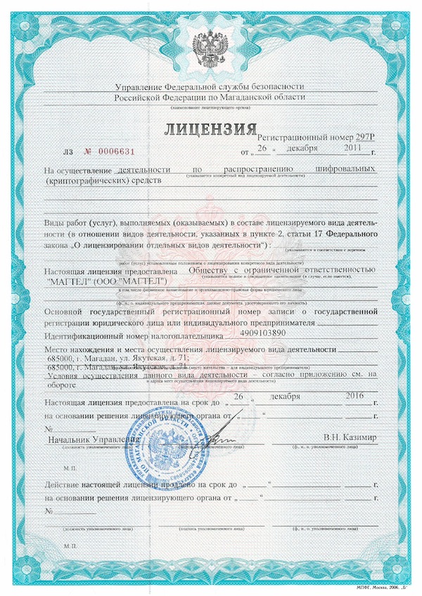 Лицензии на осуществление деятельности